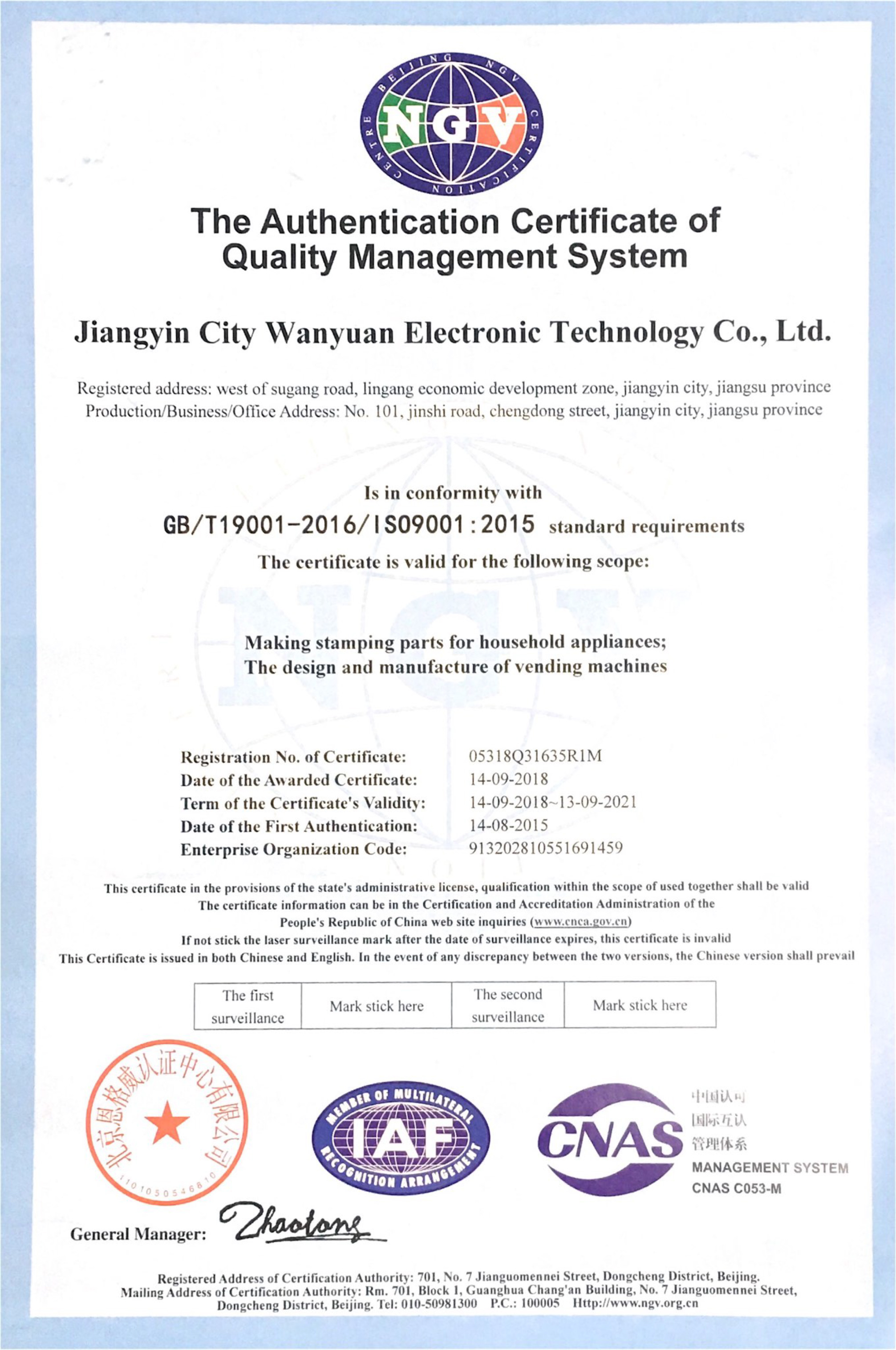 ISO9001、CE、CQC等國際權威認證。